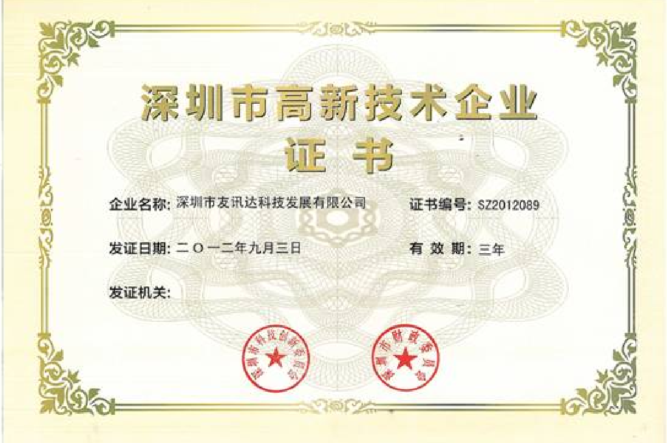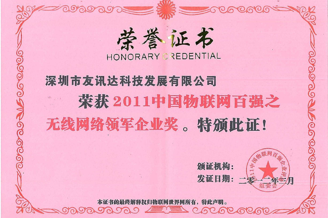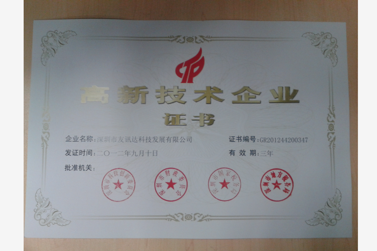 友讯达科技借助物联网的良好发展机遇,通过自主创新、产学研结合和产业联盟合作的技术创新多元化机制,高起点积极 拓展发展空间,先后获得诸多荣誉资质,赢得业界的高度认可和客户的充分好评。